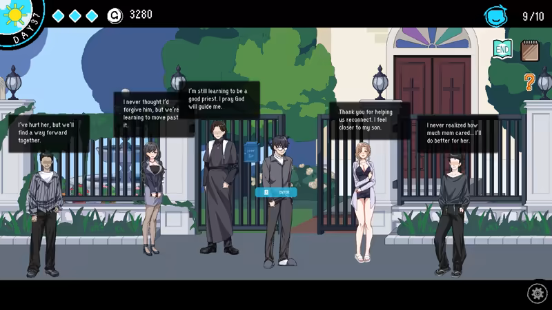 Every day consists of four periods—Morning, Afternoon, Evening and Night. Plan your schedule wisely to boost relationships, earn cash, and uncover secrets.