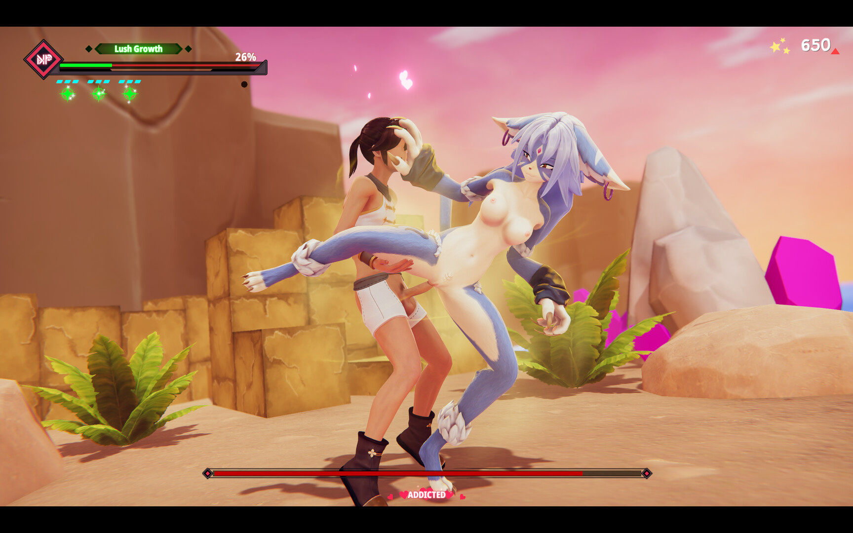 Beware of Bind Attacks. Once you are afflicted with Addiction, your defense decreases, and the battle will become more difficult.