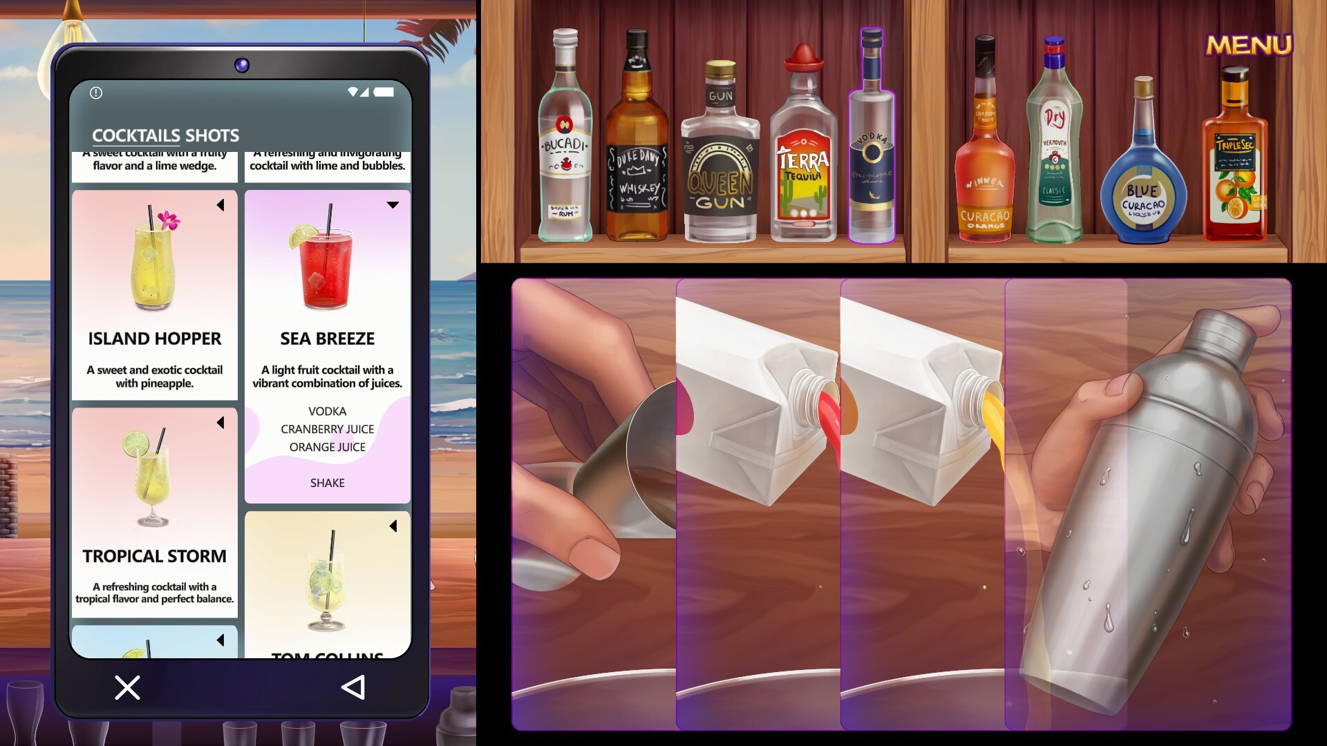 • Start of the story: meet the main characters and learn how to make cocktails