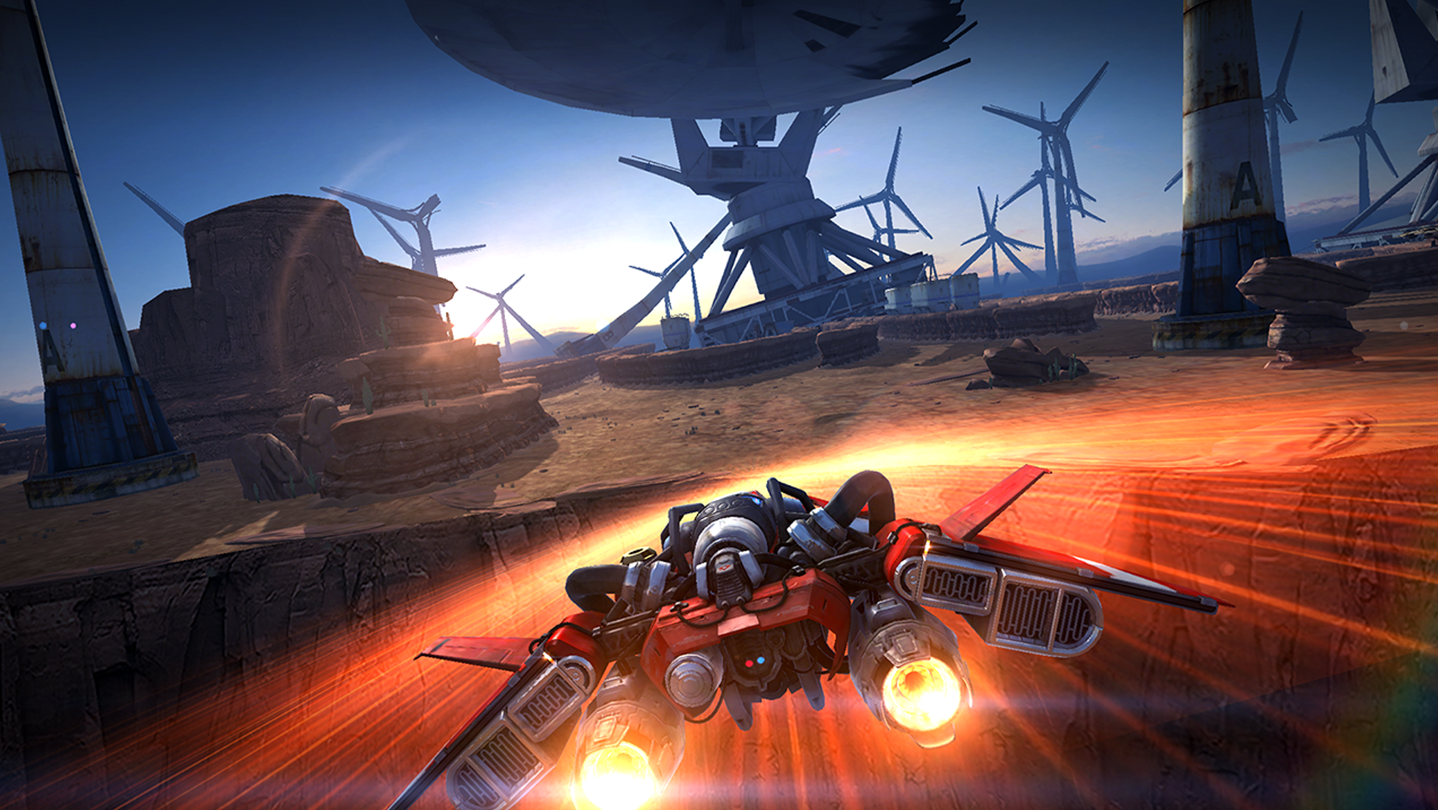Fly at BREAKNECK speed as you pursue your mission and get as far as you can. The world is now occupied by invaders—and they are hunting you. Scramble through unfamiliar terrain, dodging obstacles and evading capture and destruction. Retrace and optimize your route to improve your distance. Test your limits and your control, and earn rewards for the risks you take.