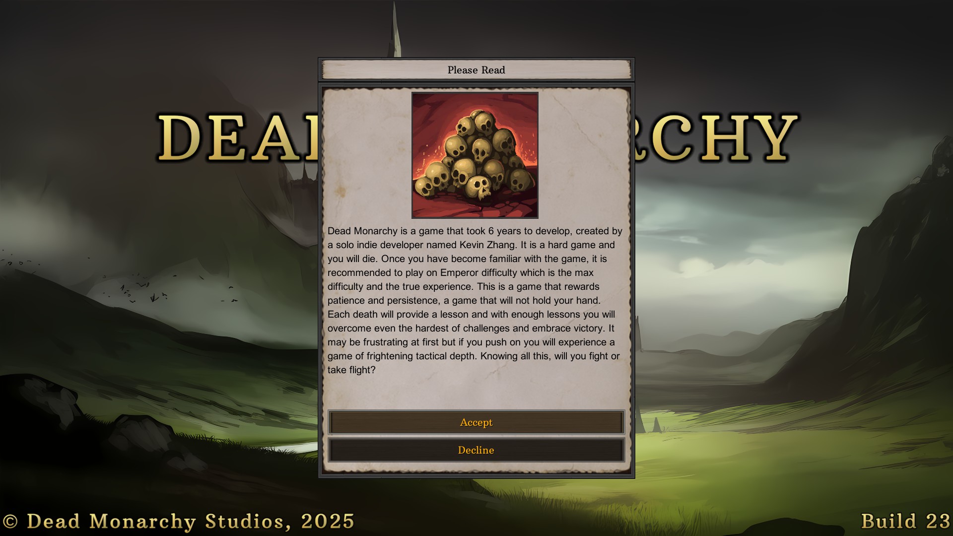Dead Monarchy is an open-world, turn-based tactical RPG set in a low fantasy world. Personally lead and manage your mercenary company as the captain and embark on your personal quest to defeat the arena champions.