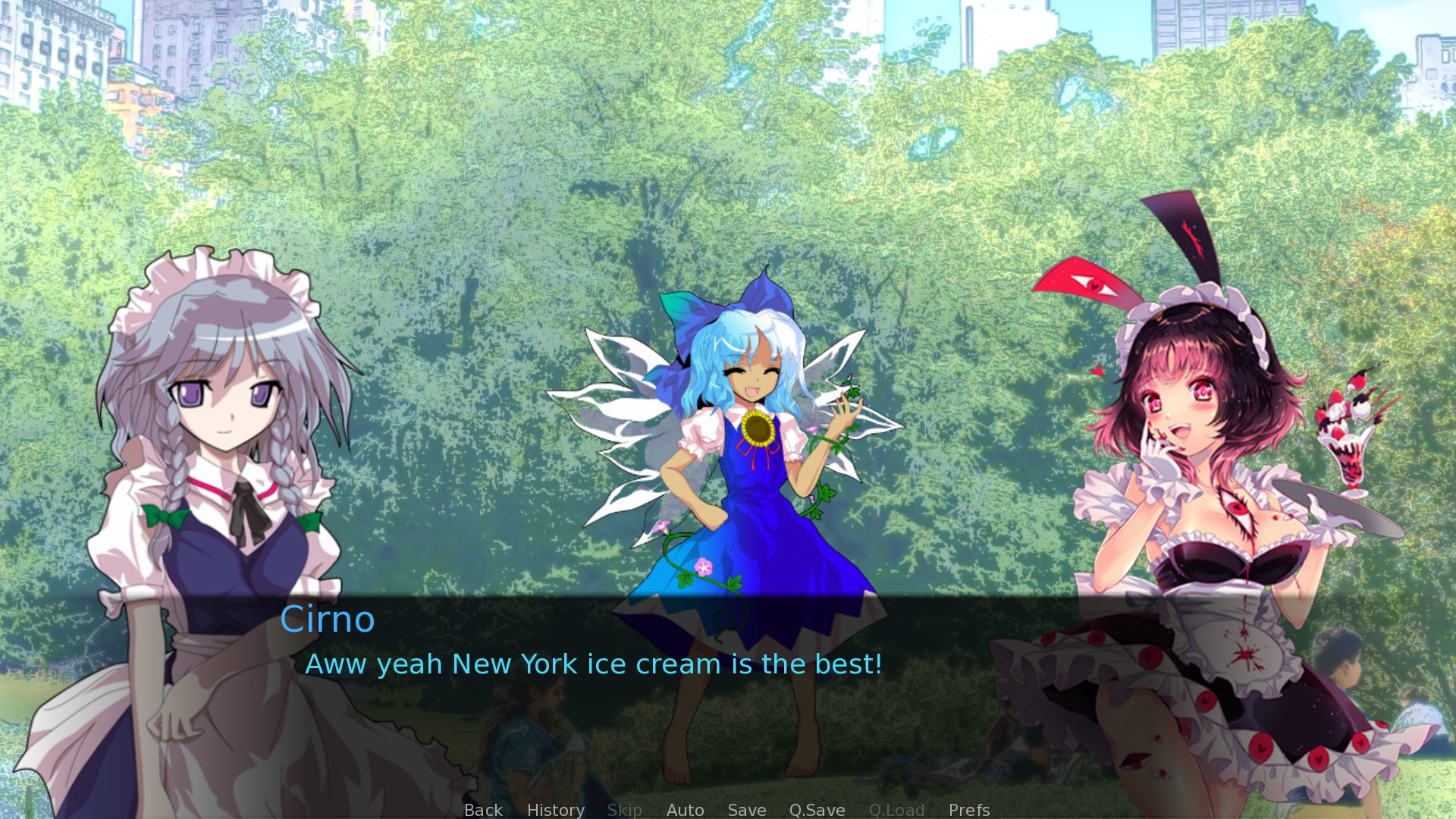 When Cirno discovers a magical item in Gensokyo, her power grows as she freezes all the land! Not satisfied with just Gensokyo, she opens a portal to try and freeze New York in the summer! Join us for this free short visual novel Touhou adventure!
