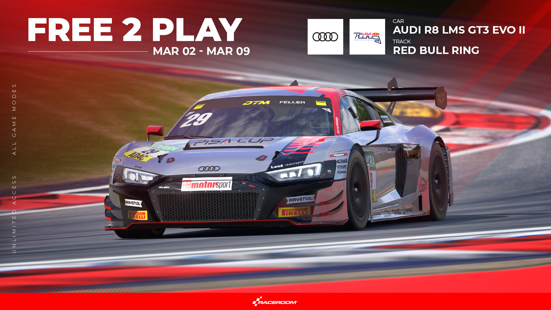 RaceRoom is free to download and built on true-to-life physics and Force Feedback. Drive DTM, FIA WTCC, WTCR and a huge library of cars and tracks—including the most up-to-date Nordschleife. Jump in, race instantly, and expand your garage with a massive selection of content.