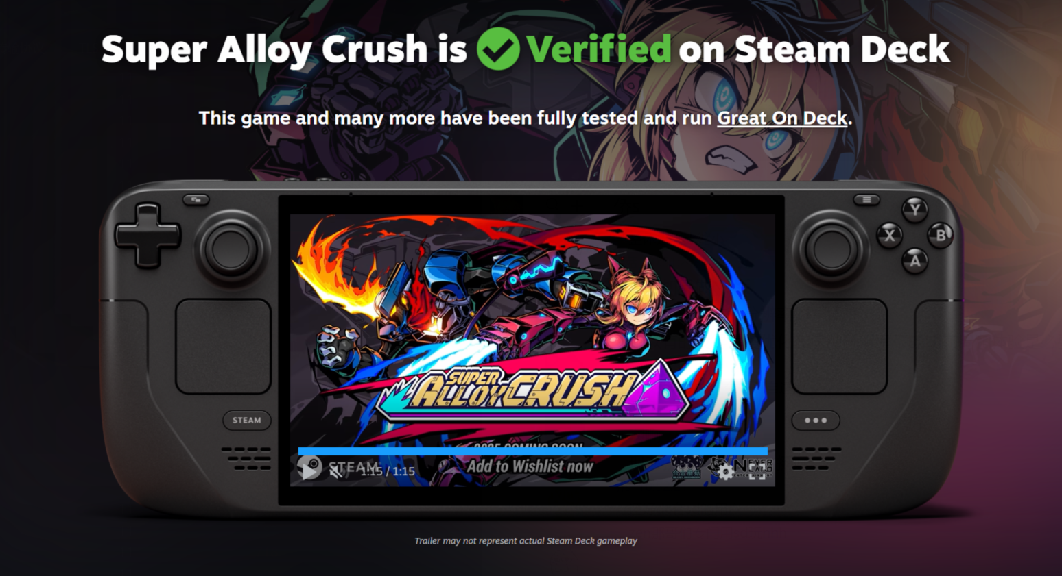 Super Alloy Crush is a fast-paced 2D roguelike brawler inspired by classics like Mega Man X. Play as Kelly and Muu (No.02) to defeat enemies and obtain the ultimate cosmic treasure: Planet AE-38. Alone or with a friend in local co-op, get ready for your biggest challenge yet!