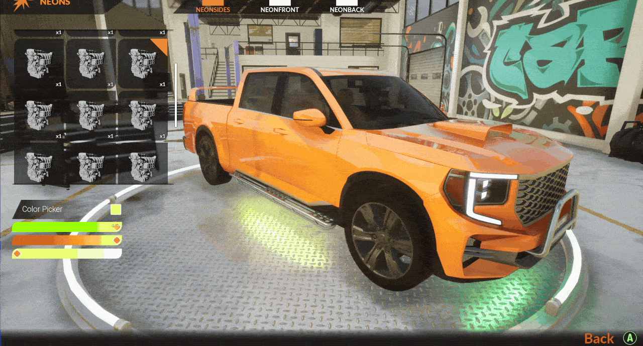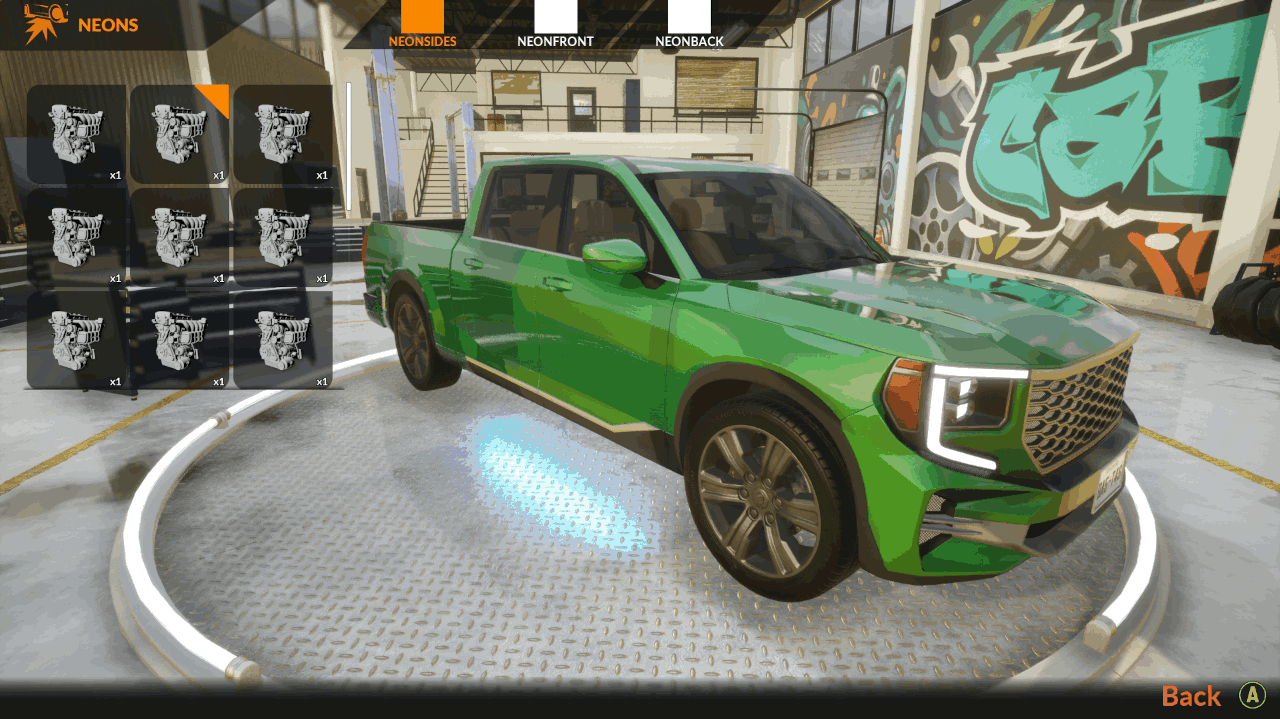 By adding spoilers, side skirts, changing rims, and applying custom liveries, you can shape a truly unique style. Neon lights complete the look - enhancing the car’s character and allowing you to create distinctive, eye-catching builds.