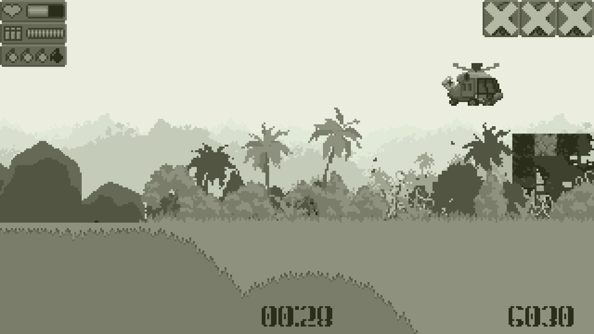Mega hardcore! In this game you will receive damage first, and only then you will locate the enemy. The implementation of military operations in the classic mechanics of platformer.